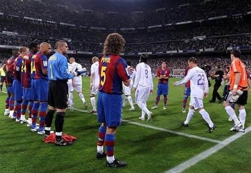 在西甲历史上,总共只有3次巴萨或皇马列队祝贺对方成为的情况发生。1988年5月,阿拉贡内斯执教的巴萨在诺坎普球场列队欢迎布特拉格诺领衔的军团;1991年,皇马也曾在主场列队欢迎克鲁伊夫执教的梦之队;后一次就是2007-08赛季,里杰卡尔德的巴萨在落后皇马多达14分的情况下,不得不在伯纳乌列队欢迎新科皇马。